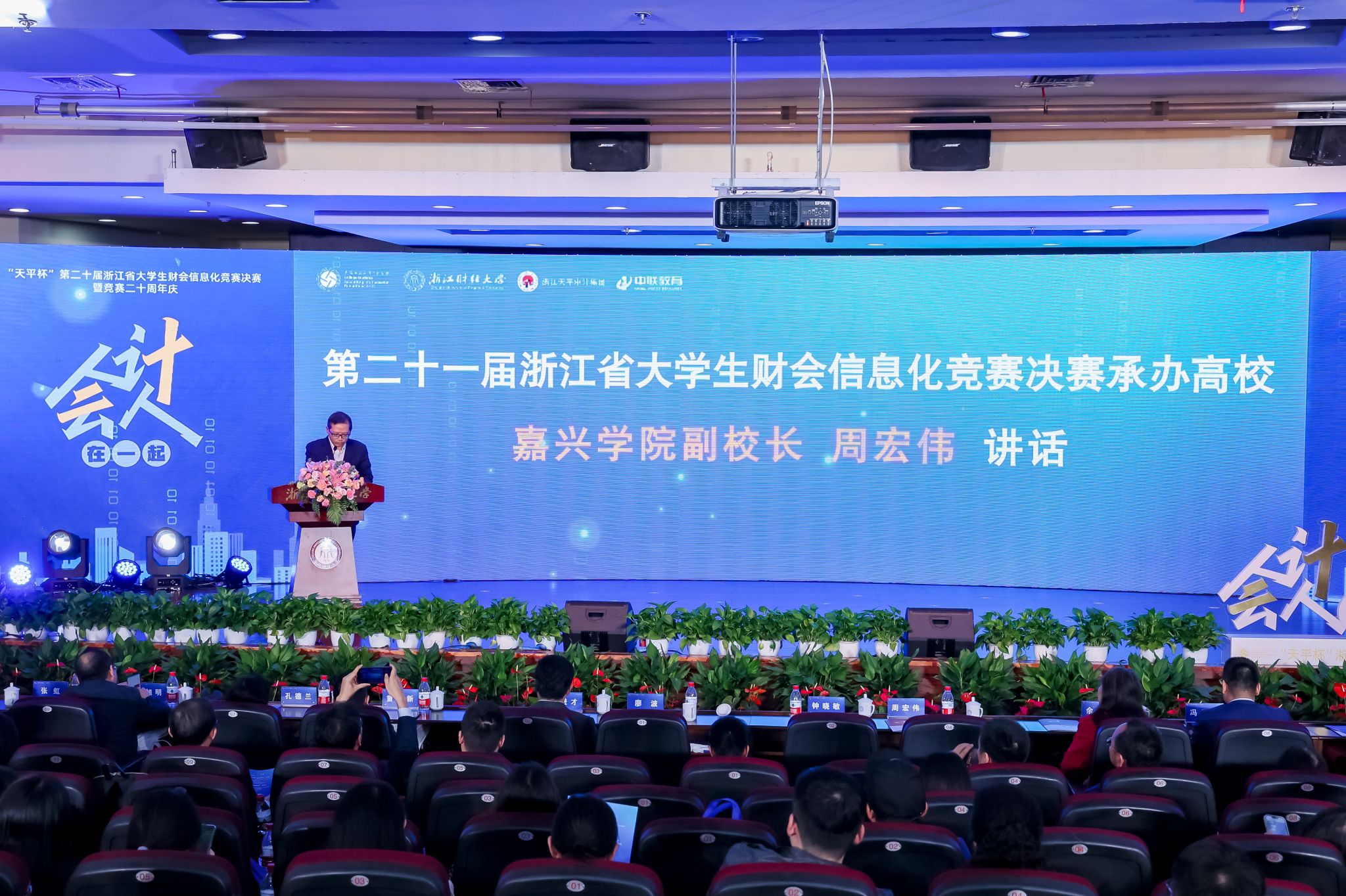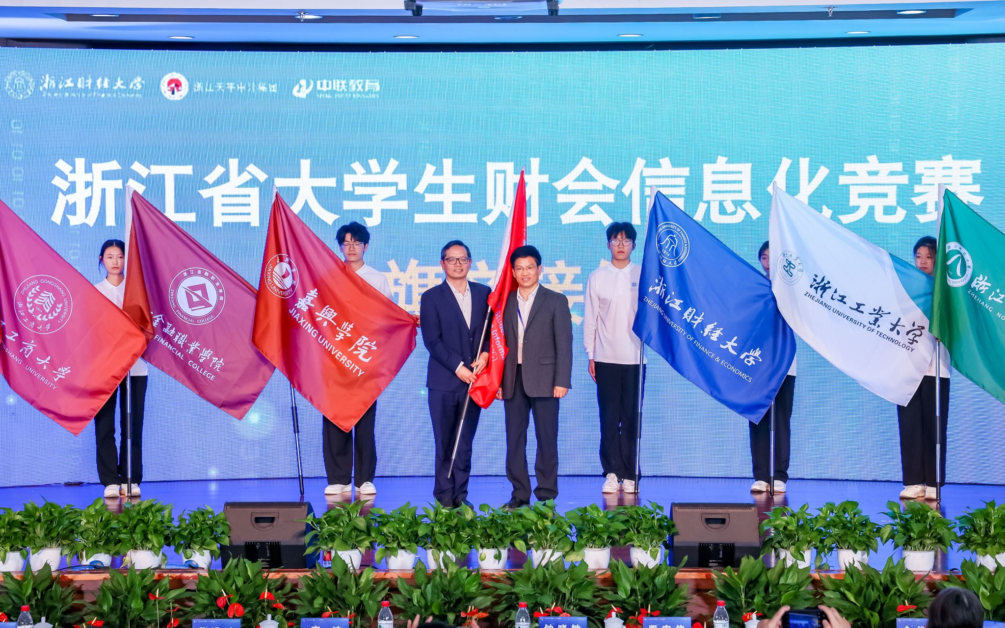 2023年11月11日,“天平杯”第二十届浙江省大学生财会信息化竞赛闭幕式暨竞赛二十周年庆典在浙江财经大学隆重举行,闭幕式上进行了赛旗交接仪式。我校周宏伟副校长出席闭幕式,代表嘉兴麻豆视频 接受了2024年第二十一届浙江省大学生财会信息化大赛决赛的承办权,并在大会上发表了热情洋溢的讲话。他代表嘉兴麻豆视频 承诺将全力以赴筹备好下届竞赛,并诚挚邀请各位领导、老师和同学明年赴嘉兴麻豆视频 参赛。麻豆视频 李郁明副院长等一同参加了活动。